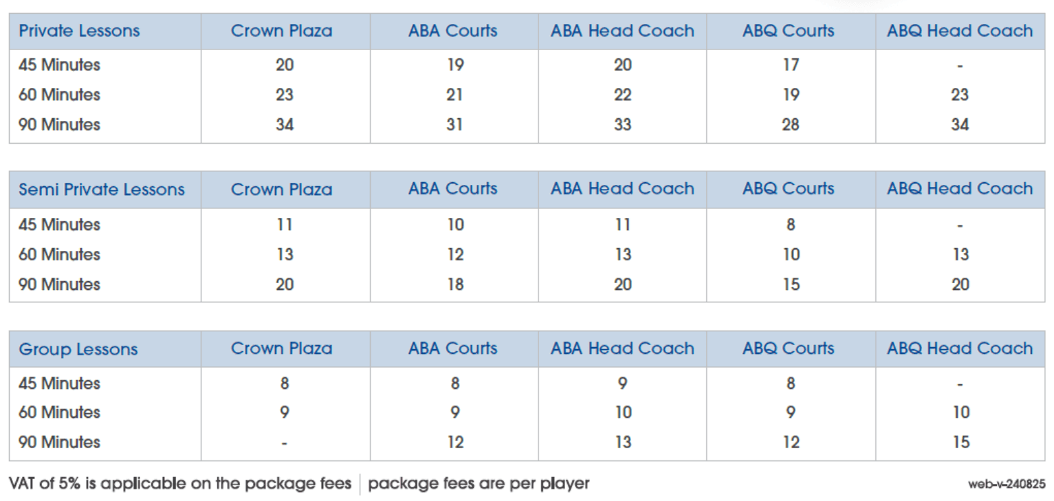 - Group Classes – 3 or more players per coach